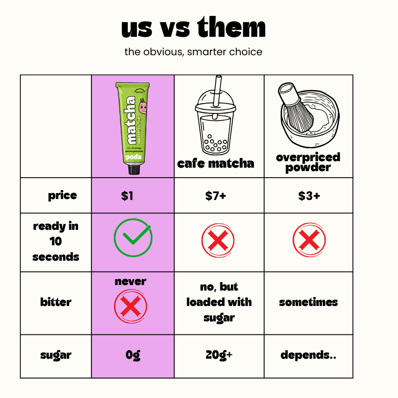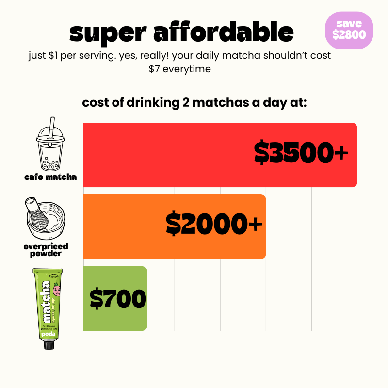 poda is fresher and easier to use. unlike powders, which become stale and clumpy, our paste is preserved in an airtight tube, locking in vibrant flavors and nutrients. just squeeze, mix, and enjoy.